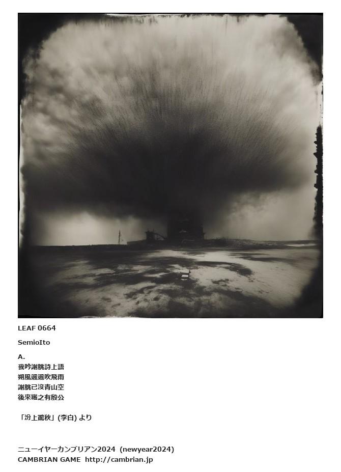 LEAF 0664SemioItoA.我吟謝朓詩上語朔風颯颯吹飛雨謝朓已沒青山空後來繼之有殷公「汾上驚秋」(李白) より