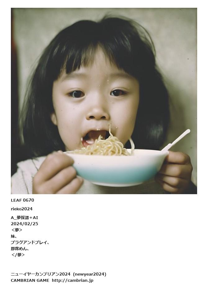 LEAF 0662フローに加えるLEAF 0670rieko2024A_夢採譜+AI2024/02/25 <夢>妹、プラグアンドプレイ、即席めん、</夢>LEAF 1046フローに加えるLEAF 0754フローに加えるLEAF 0673フローに加える
