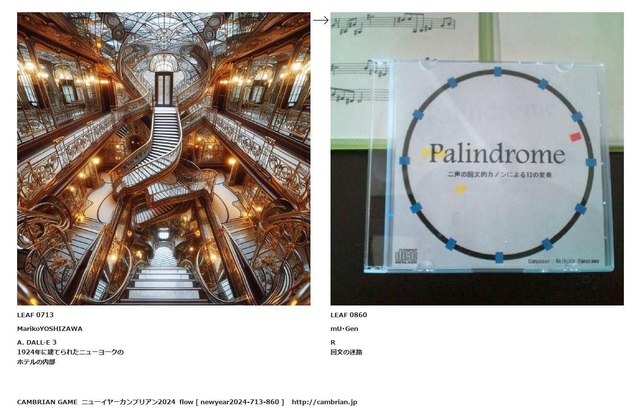 LEAF 0609フローに加えるLEAF 0713MarikoYOSHIZAWAA. DALL·E 31924年に建てられたニューヨークのホテルの内部↑ここから上をフローから外す↓ここから下をフローから外すLEAF 0860mU・GenR回文の迷路