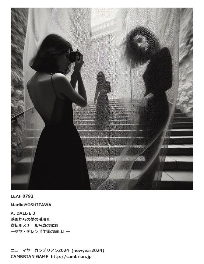 LEAF 0073フローに加えるLEAF 0792MarikoYOSHIZAWAA. DALL·E 3映画からの夢の引用Ⅱ宣伝用スチール写真の撮影―マヤ・デレン『午後の網目』―LEAF 0896フローに加えるLEAF 0848フローに加える