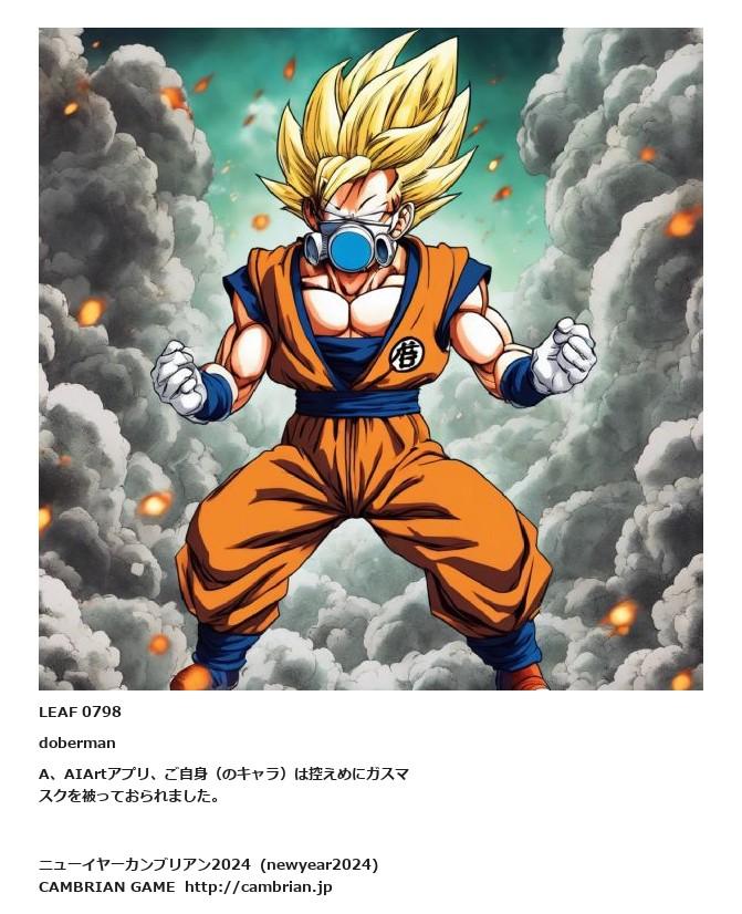 LEAF 0798dobermanA、AIArtアプリ、ご自身(のキャラ)は控えめにガスマスクを被っておられました。