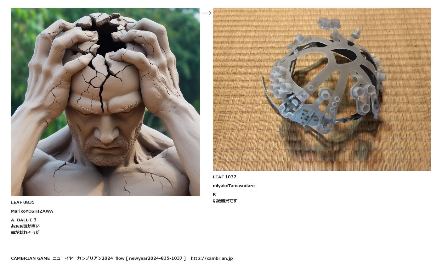 LEAF 0188フローに加えるLEAF 0835MarikoYOSHIZAWAA. DALL·E 3あぁぁ頭が痛い頭が割れそうだ↑ここから上をフローから外す↓ここから下をフローから外すLEAF 1037miyakoTamasudareR治療器具です