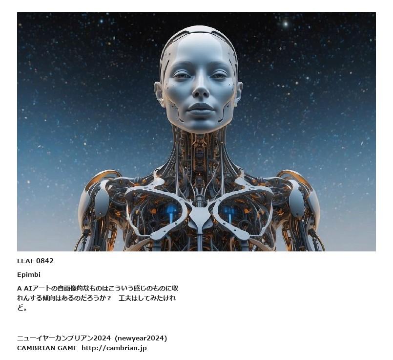 LEAF 0842EpimbiA AIアートの自画像的なものはこういう感じのものに収れんする傾向はあるのだろうか? 工夫はしてみたけれど。