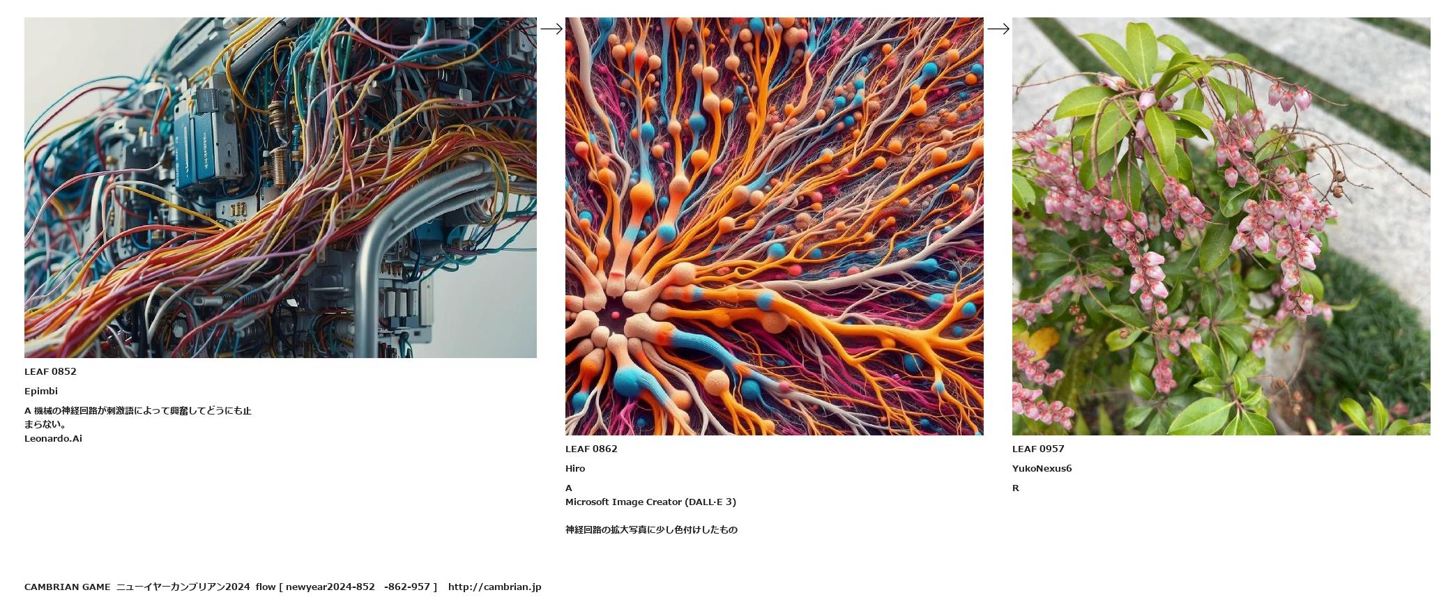 神経回路の拡大写真に少し色付けしたもの