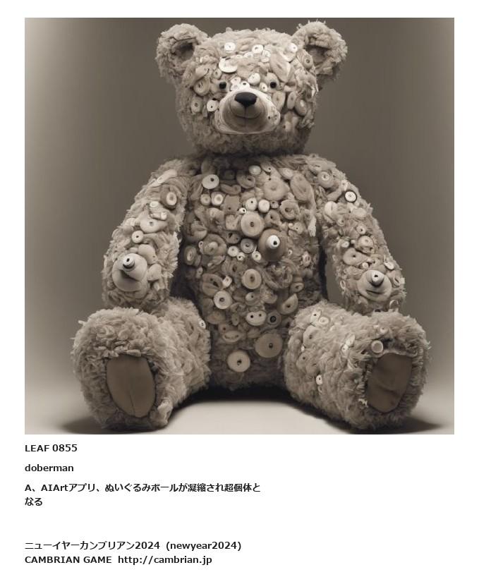 LEAF 0855dobermanA、AIArtアプリ、ぬいぐるみボールが凝縮され超個体となる