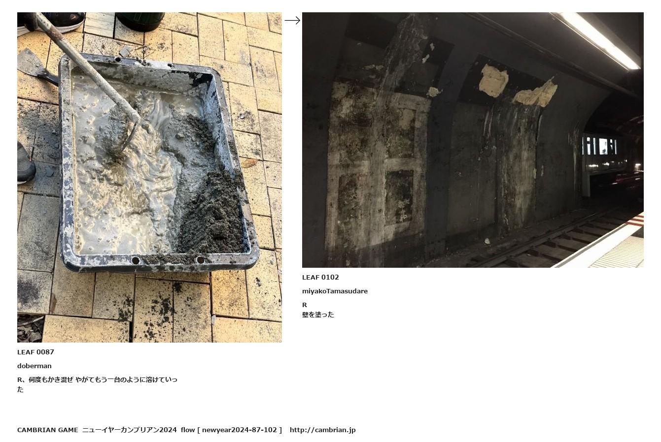LEAF 0085フローに加えるLEAF 0087dobermanR、何度もかき混ぜ やがてもう一台のように溶けていった↑ここから上をフローから外す↓ここから下をフローから外すLEAF 0102miyakoTamasudareR壁を塗ったLEAF 0120フローに加える