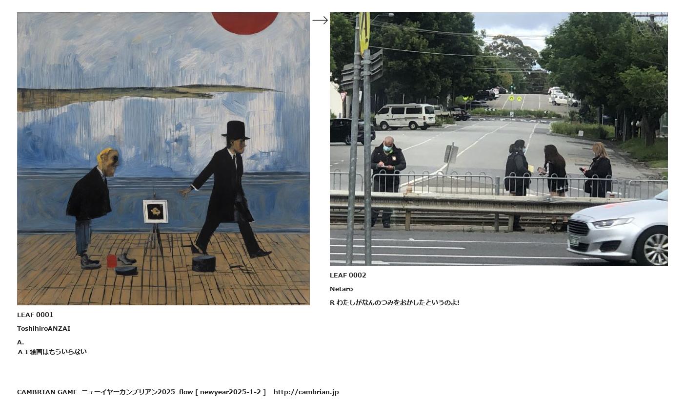 LEAF 0001ToshihiroANZAIA.AI絵画はもういらない↑ここから上をフローから外す↓ここから下をフローから外すLEAF 0002NetaroR わたしがなんのつみをおかしたというのよ!LEAF 0075フローに加えるLEAF 0008フローに加える