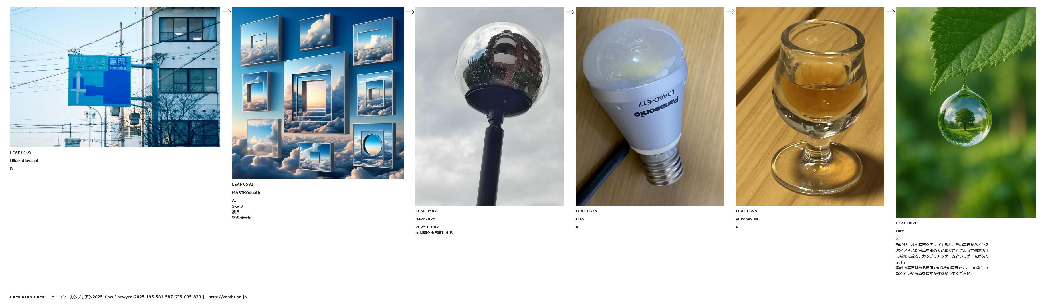 誰かが一枚の写真をアップすると、その写真からインスパイアされた写真を別の人が繋ぐことによって樹木のような形になる、カンブリアンゲームというゲームがあります。