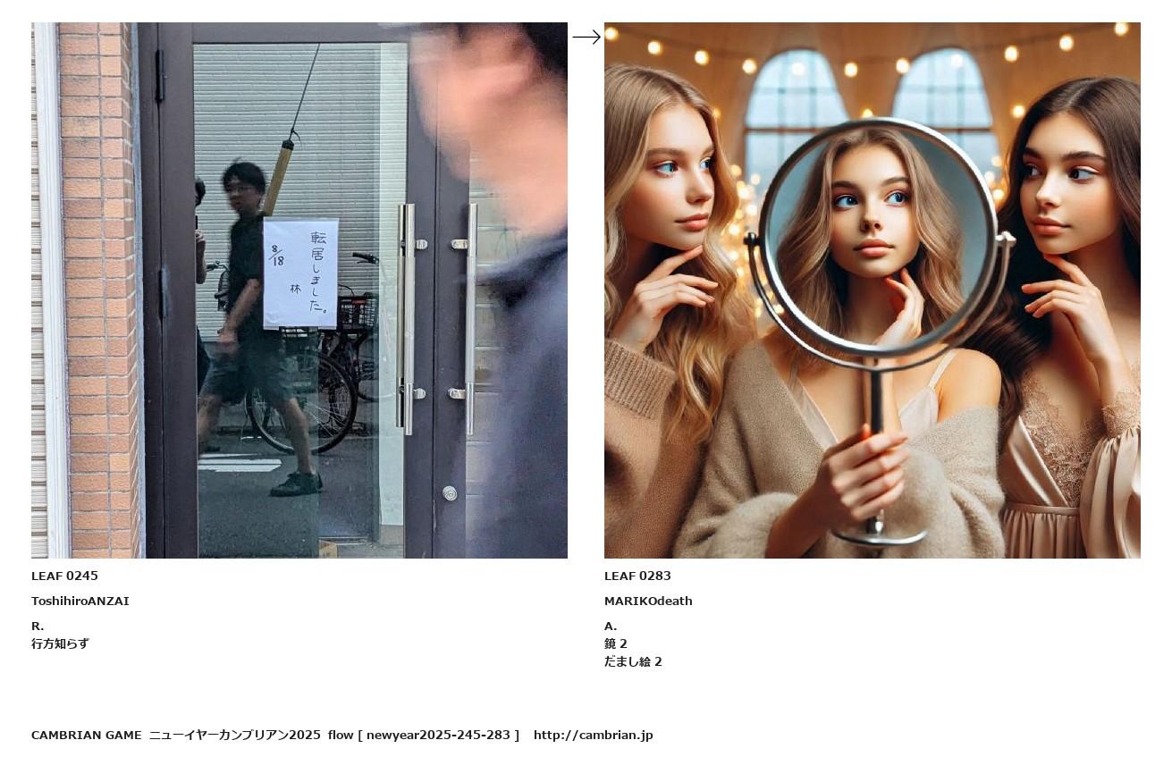 LEAF 0240フローに加えるLEAF 0245ToshihiroANZAIR.行方知らず↑ここから上をフローから外す↓ここから下をフローから外すLEAF 0283MARIKOdeathA.鏡 2だまし絵 2LEAF 0368フローに加える