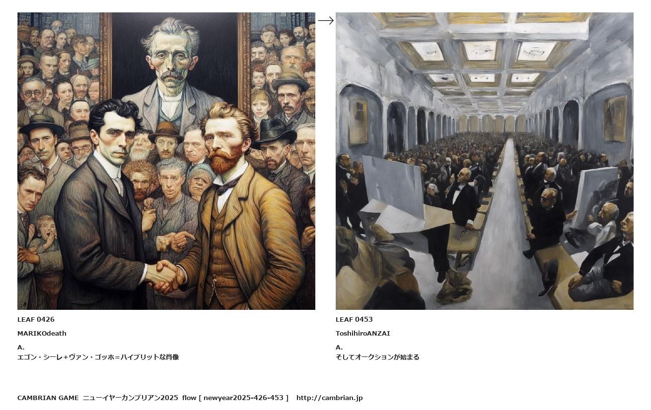 LEAF 0418フローに加えるLEAF 0426MARIKOdeathA.エゴン・シーレ+ヴァン・ゴッホ=ハイブリットな肖像↑ここから上をフローから外す↓ここから下をフローから外すLEAF 0453ToshihiroANZAIA.そしてオークションが始まるLEAF 0474フローに加える