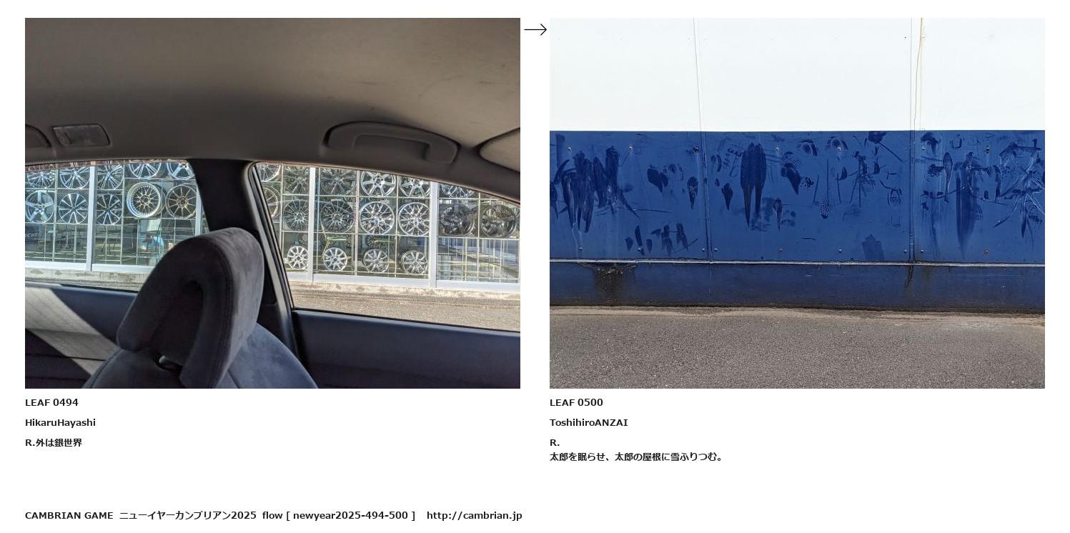 LEAF 0401フローに加えるLEAF 0494HikaruHayashiR.外は銀世界↑ここから上をフローから外す↓ここから下をフローから外すLEAF 0500ToshihiroANZAIR.太郎を眠らせ、太郎の屋根に雪ふりつむ。LEAF 0527フローに加える