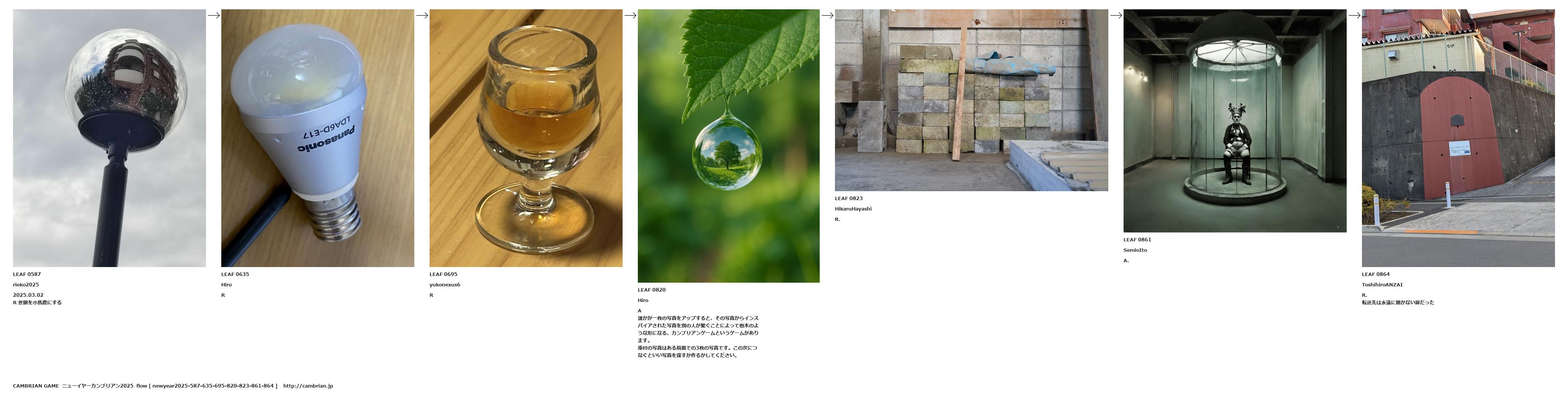 誰かが一枚の写真をアップすると、その写真からインスパイアされた写真を別の人が繋ぐことによって樹木のような形になる、カンブリアンゲームというゲームがあります。