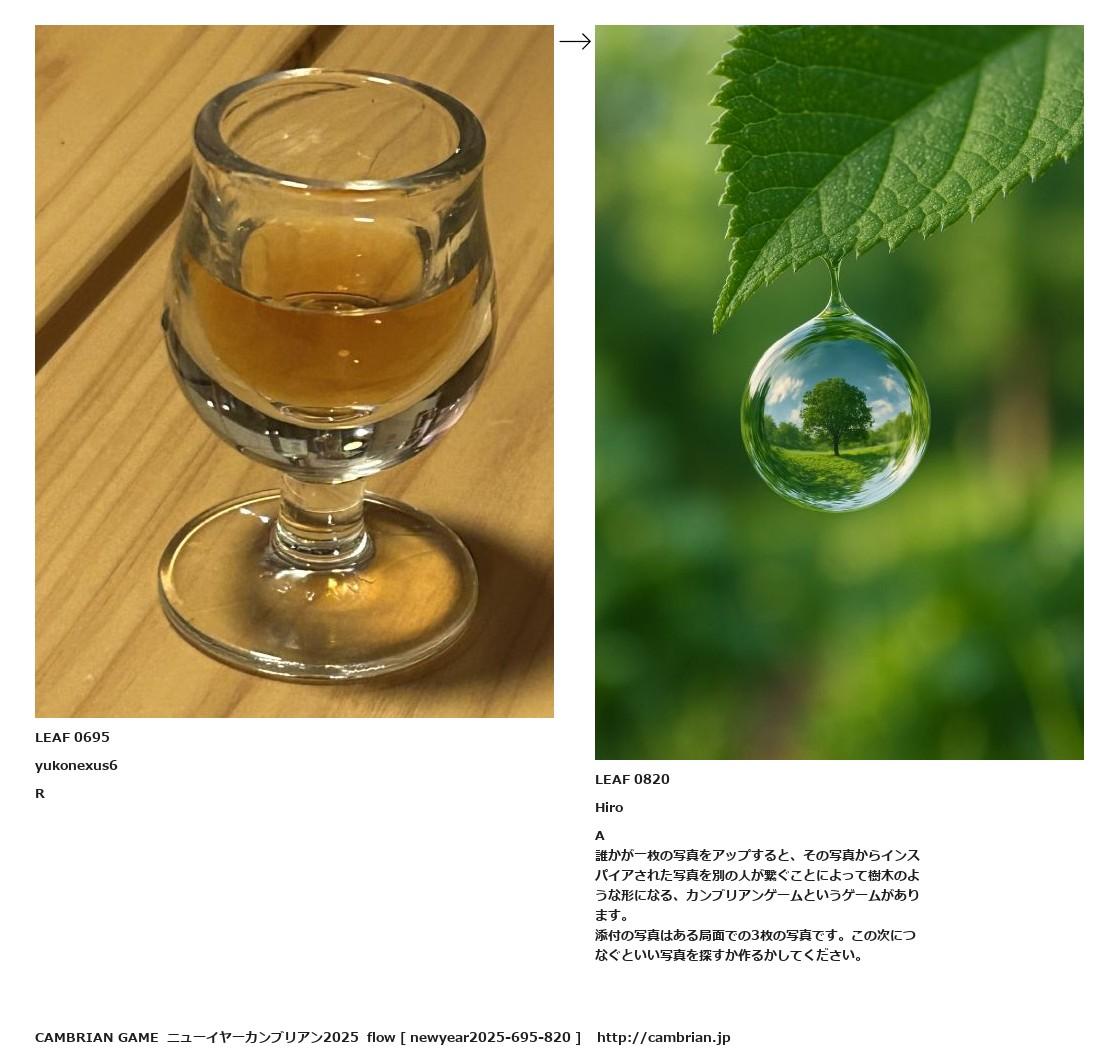 誰かが一枚の写真をアップすると、その写真からインスパイアされた写真を別の人が繋ぐことによって樹木のような形になる、カンブリアンゲームというゲームがあります。
