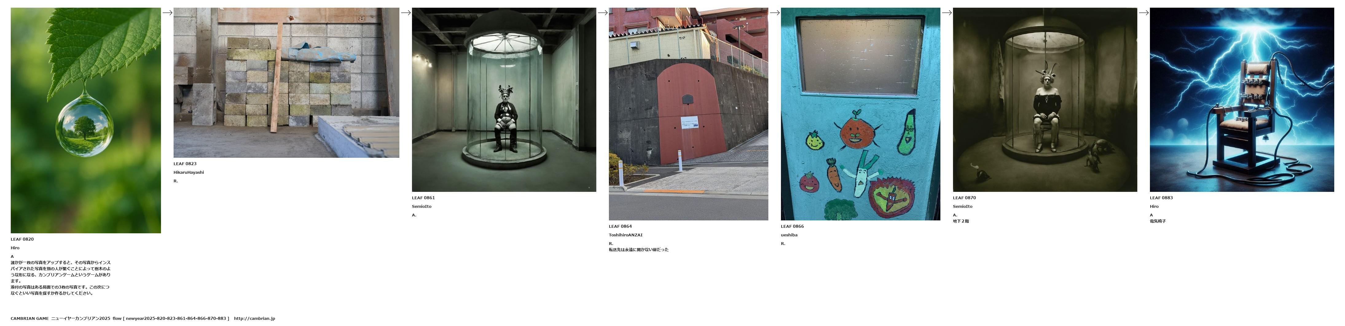 誰かが一枚の写真をアップすると、その写真からインスパイアされた写真を別の人が繋ぐことによって樹木のような形になる、カンブリアンゲームというゲームがあります。