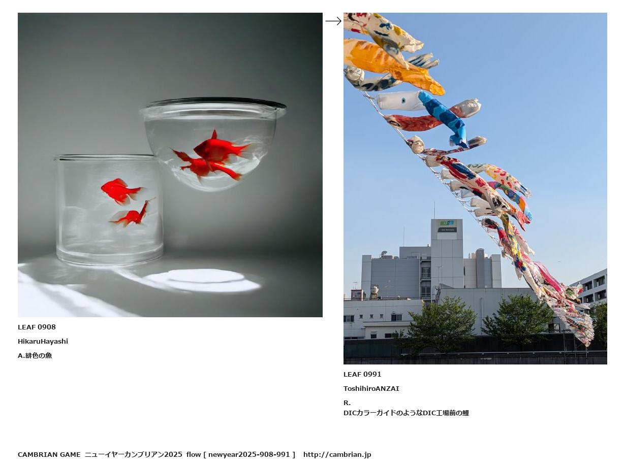 LEAF 0807フローに加えるLEAF 0908HikaruHayashiA.緋色の魚↑ここから上をフローから外す↓ここから下をフローから外すLEAF 0991ToshihiroANZAIR.DICカラーガイドのようなDIC工場前の鯉LEAF 0994フローに加える