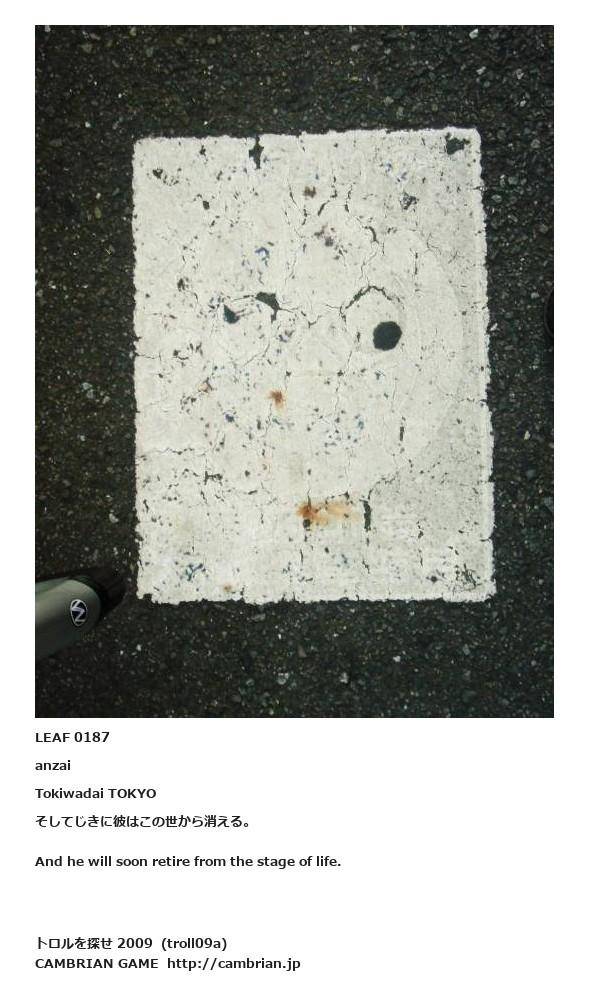 LEAF 0180フローに加えるLEAF 0187anzaiTokiwadai TOKYOそしてじきに彼はこの世から消える。And he will soon retire from the stage of life.LEAF 0193フローに加えるLEAF 0188フローに加える