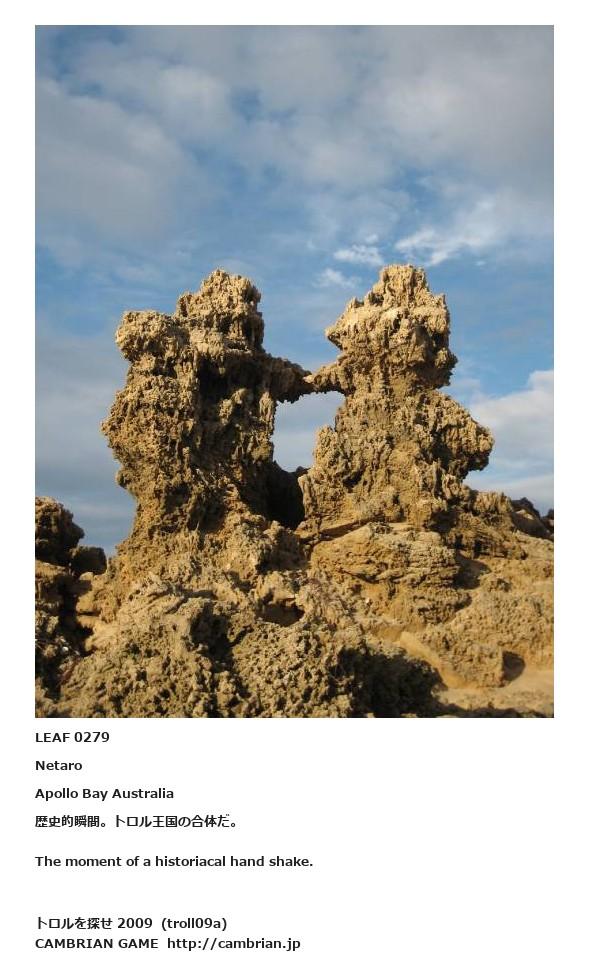 LEAF 0254フローに加えるLEAF 0279NetaroApollo Bay Australia歴史的瞬間。トロル王国の合体だ。The moment of a historiacal hand shake.LEAF 0389フローに加えるLEAF 0288フローに加える