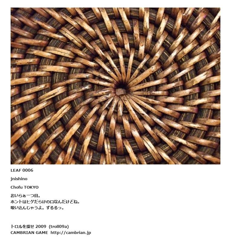 LEAF 0003フローに加えるLEAF 0006jnishinoChofu TOKYOおいらぁ一つ目。ホントはヒゲだらけの口なんだけどね。吸い込んじゃうよ。ずるるっ。LEAF 0010フローに加えるLEAF 0008フローに加える