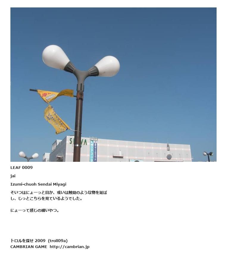LEAF 0003フローに加えるLEAF 0009jaiIzumi-chuoh Sendai Miyagiそいつはにょーっと目か、或いは触覚のような物を延ばし、じっとこちらを見ているようでした。にょーって感じの細いやつ。LEAF 0020フローに加える