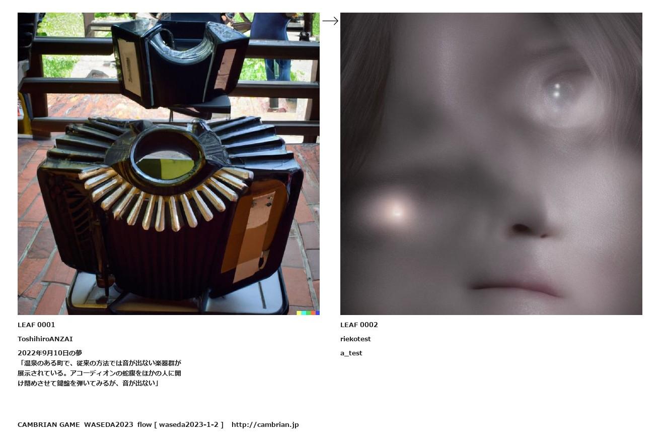 LEAF 0001ToshihiroANZAI2022年9月10日の夢「温泉のある町で、従来の方法では音が出ない楽器群が展示されている。アコーディオンの蛇腹をほかの人に開け閉めさせて鍵盤を弾いてみるが、音が出ない」↑ここから上をフローから外す↓ここから下をフローから外すLEAF 0002riekotesta_testLEAF 0106フローに加えるLEAF 0061フローに加えるLEAF 0054フローに加えるLEAF 0051フローに加えるLEAF 0050フローに加えるLEAF 0047フローに加えるLEAF 0025フローに加える