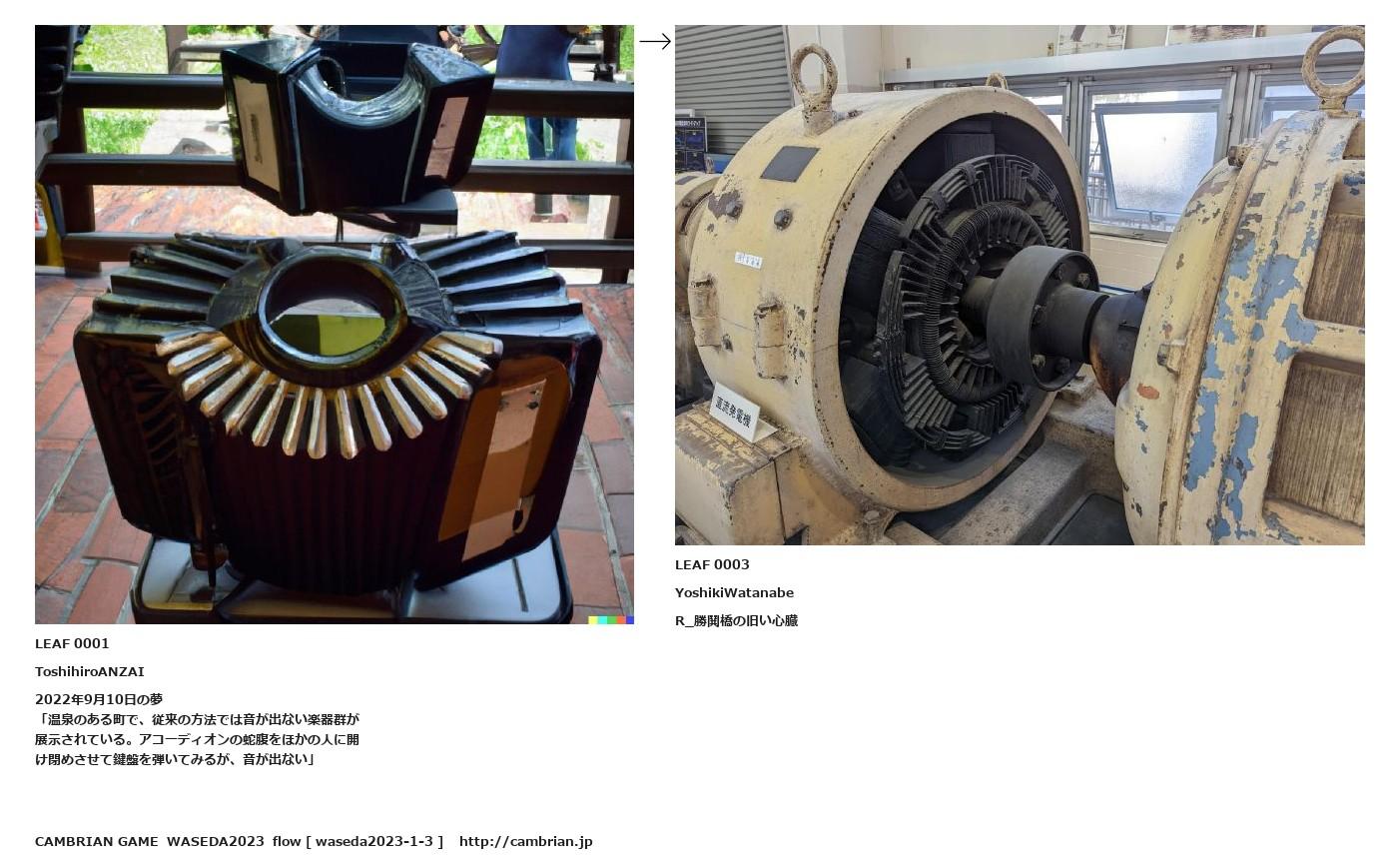 「温泉のある町で、従来の方法では音が出ない楽器群が展示されている。アコーディオンの蛇腹をほかの人に開け閉めさせて鍵盤を弾いてみるが、音が出ない」