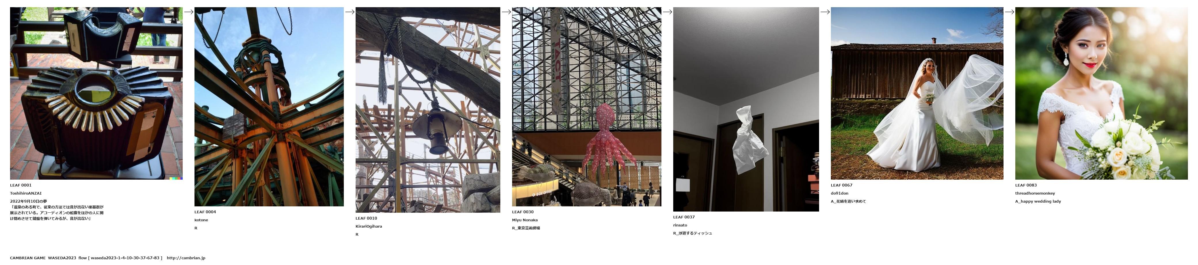 「温泉のある町で、従来の方法では音が出ない楽器群が展示されている。アコーディオンの蛇腹をほかの人に開け閉めさせて鍵盤を弾いてみるが、音が出ない」
