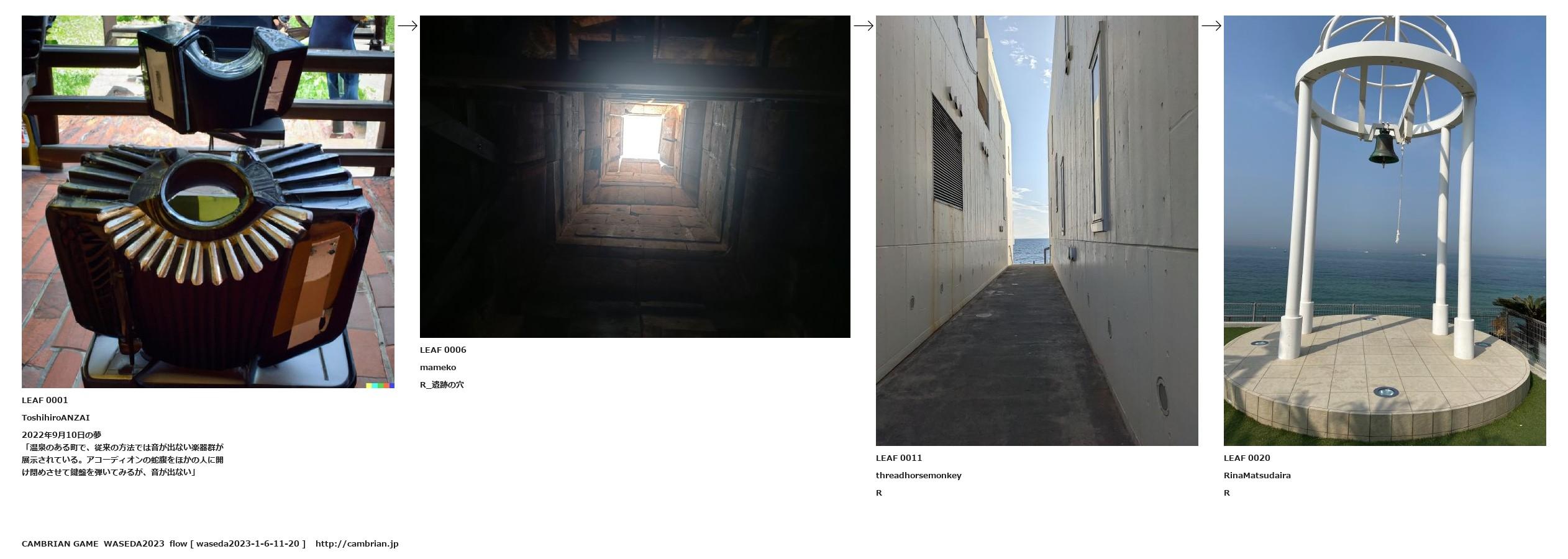 「温泉のある町で、従来の方法では音が出ない楽器群が展示されている。アコーディオンの蛇腹をほかの人に開け閉めさせて鍵盤を弾いてみるが、音が出ない」