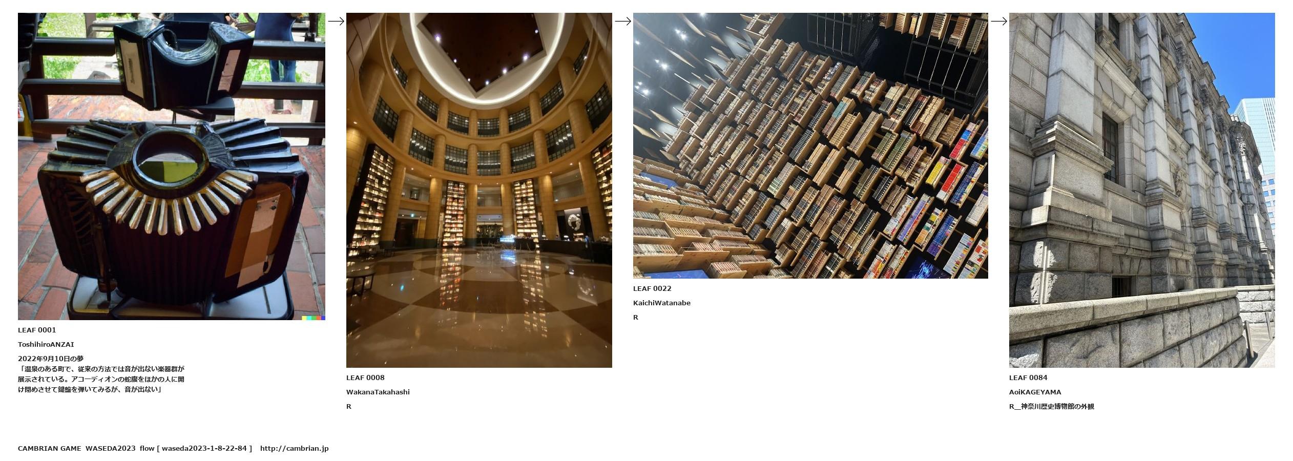 「温泉のある町で、従来の方法では音が出ない楽器群が展示されている。アコーディオンの蛇腹をほかの人に開け閉めさせて鍵盤を弾いてみるが、音が出ない」