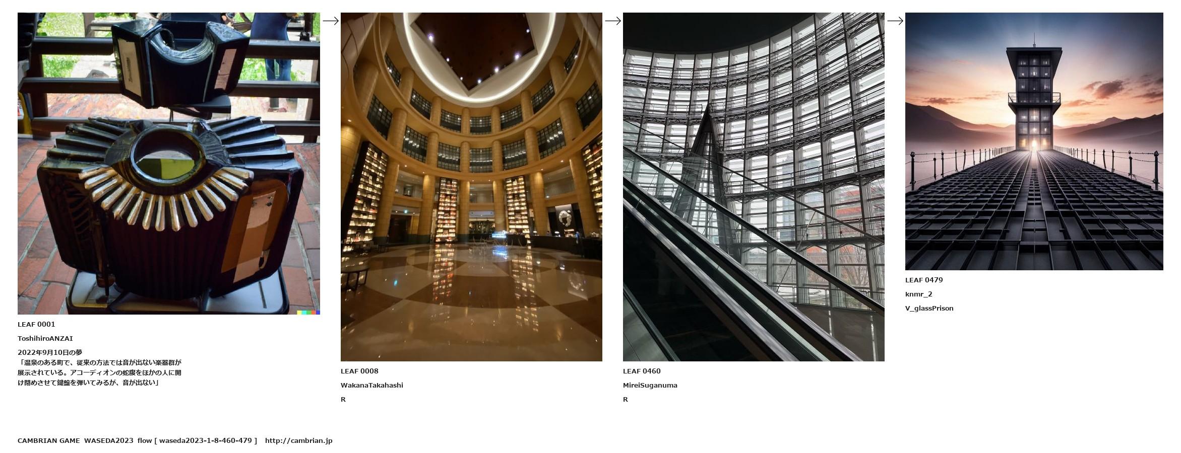 「温泉のある町で、従来の方法では音が出ない楽器群が展示されている。アコーディオンの蛇腹をほかの人に開け閉めさせて鍵盤を弾いてみるが、音が出ない」
