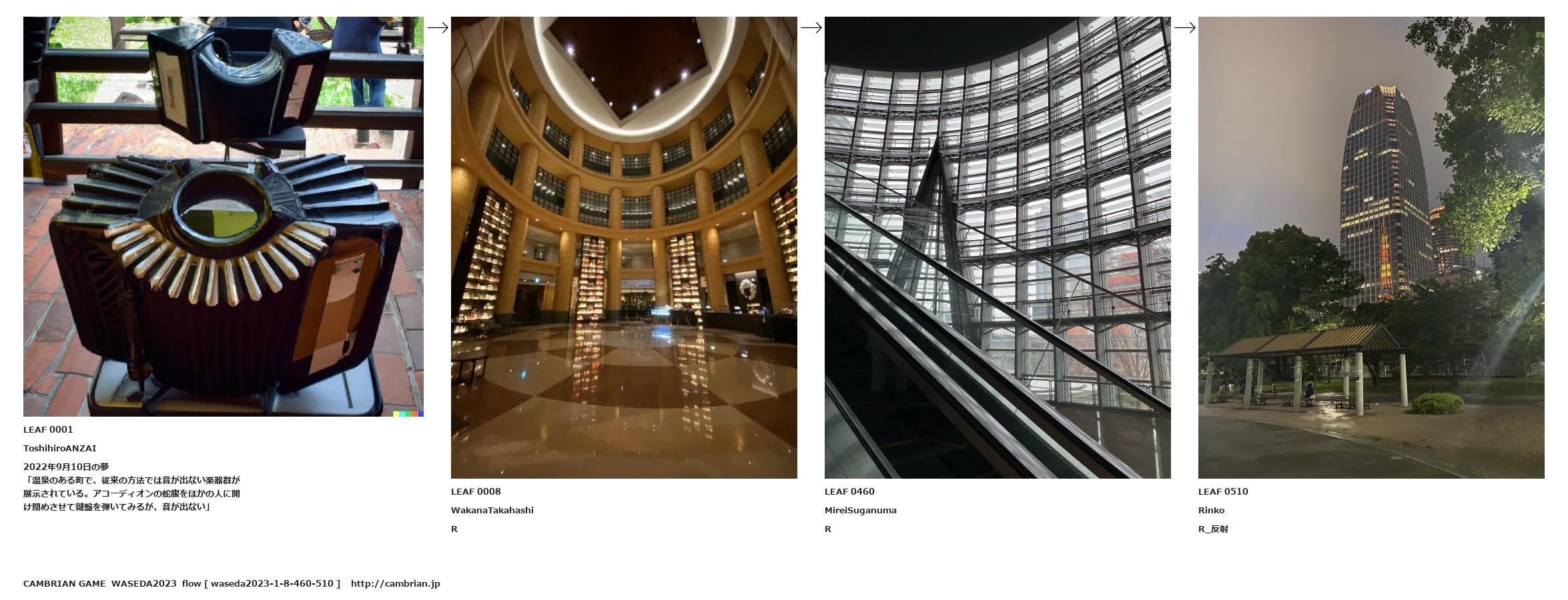 「温泉のある町で、従来の方法では音が出ない楽器群が展示されている。アコーディオンの蛇腹をほかの人に開け閉めさせて鍵盤を弾いてみるが、音が出ない」
