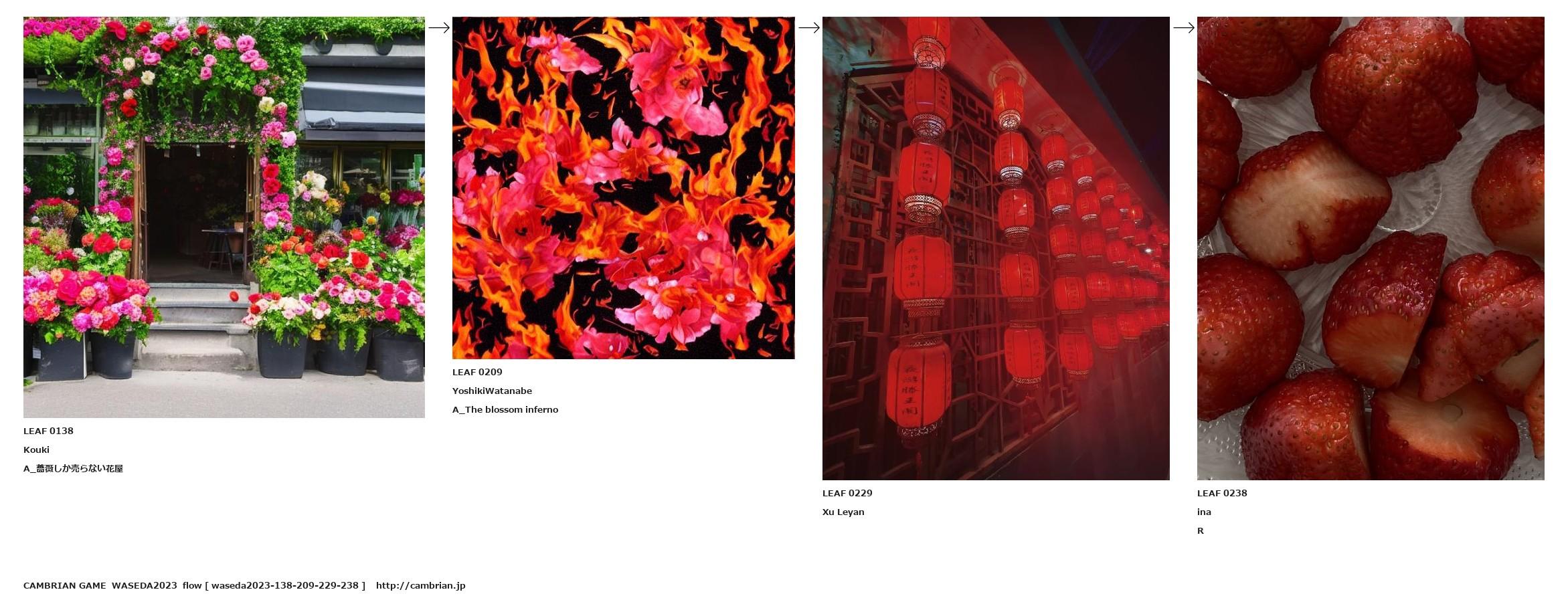 LEAF 0109フローに加えるLEAF 0138KoukiA_薔薇しか売らない花屋↑ここから上をフローから外す↓ここから下をフローから外すLEAF 0209YoshikiWatanabeA_The blossom inferno↑ここから上をフローから外す↓ここから下をフローから外すLEAF 0229Xu Leyan↑ここから上をフローから外す↓ここから下をフローから外すLEAF 0238inaR