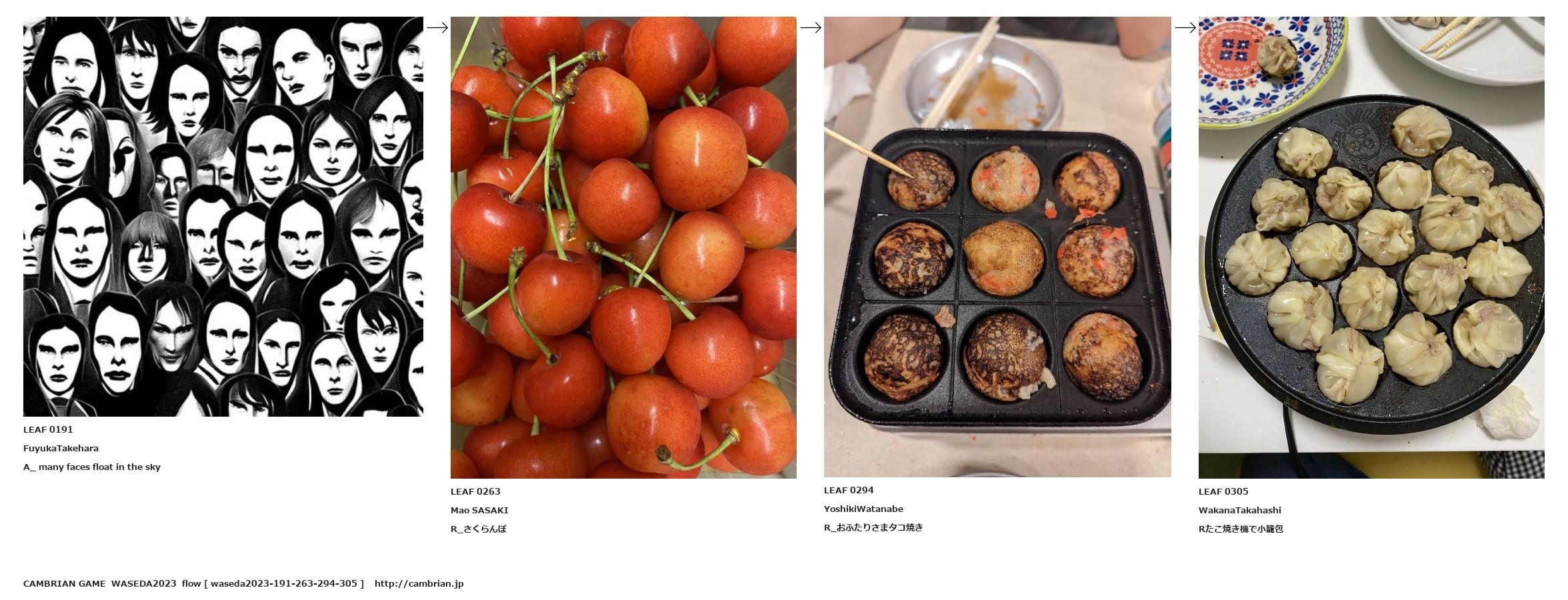 A_ many faces float in the sky