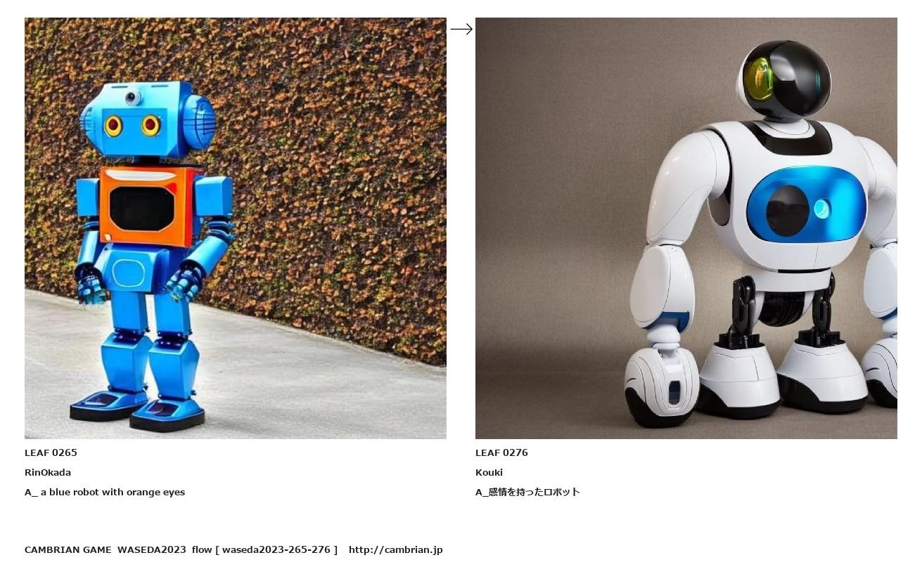 LEAF 0246フローに加えるLEAF 0265RinOkadaA_ a blue robot with orange eyes↑ここから上をフローから外す↓ここから下をフローから外すLEAF 0276KoukiA_感情を持ったロボット