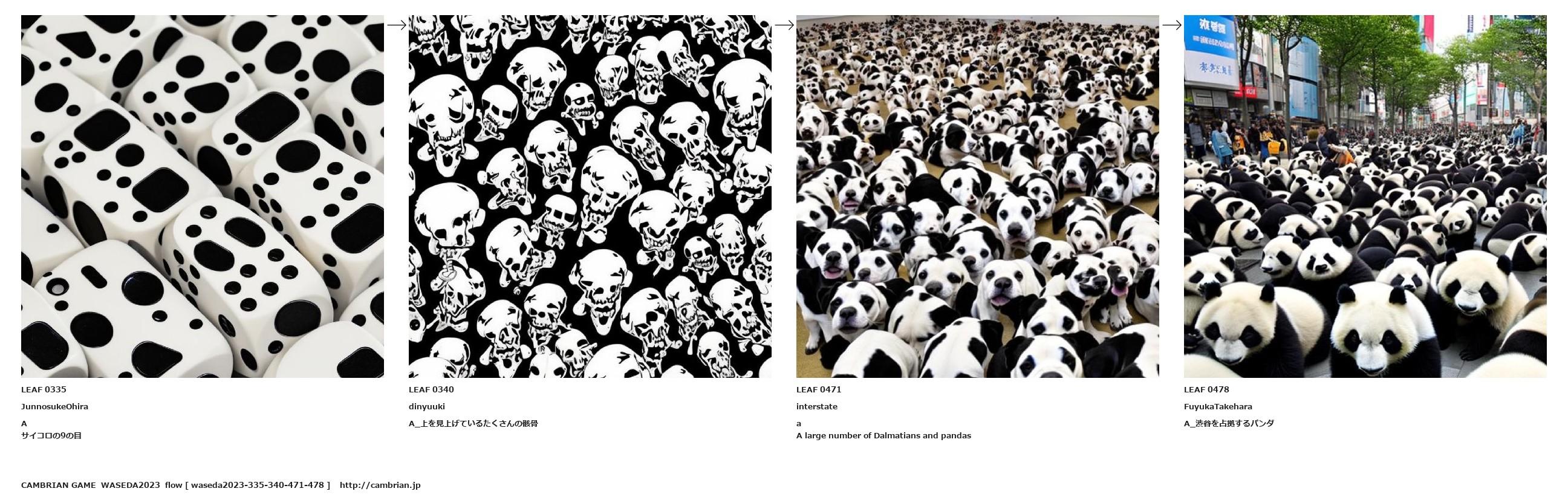 A large number of Dalmatians and pandas