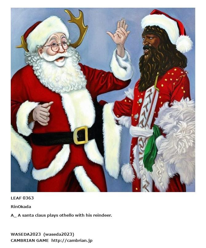 LEAF 0363RinOkadaA_ A santa claus plays othello with his reindeer.