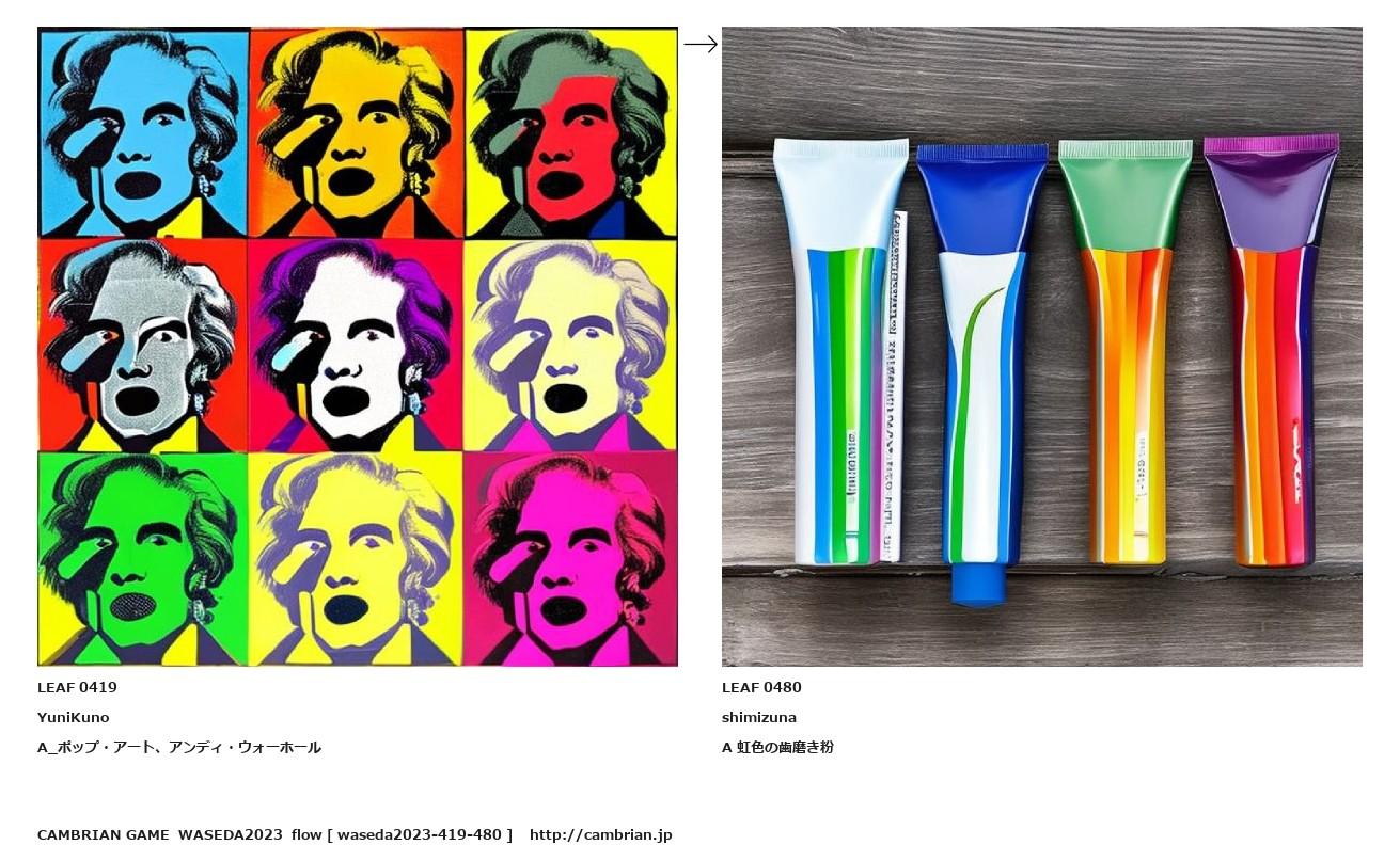 LEAF 0237フローに加えるLEAF 0419YuniKunoA_ポップ・アート、アンディ・ウォーホール↑ここから上をフローから外す↓ここから下をフローから外すLEAF 0480shimizunaA 虹色の歯磨き粉LEAF 0540フローに加える