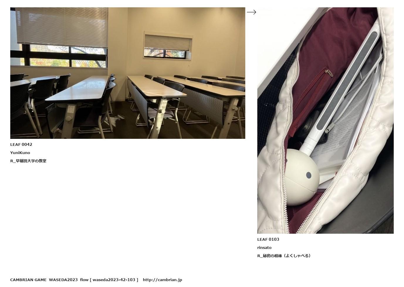 LEAF 0011フローに加えるLEAF 0042YuniKunoR_早稲田大学の教室↑ここから上をフローから外す↓ここから下をフローから外すLEAF 0103rinsatoR_秘密の相棒(よくしゃべる)LEAF 0128フローに加える