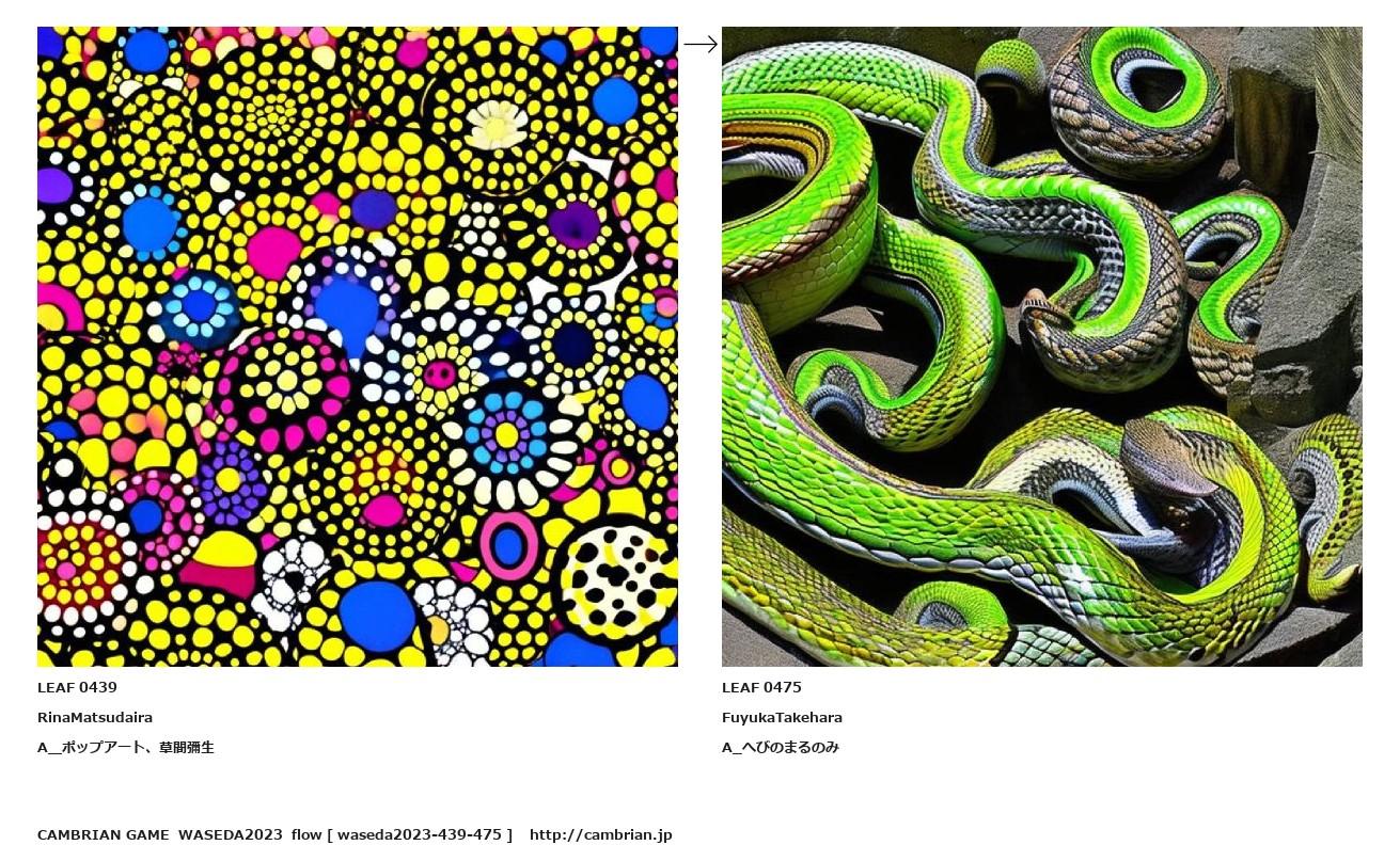 LEAF 0419フローに加えるLEAF 0439RinaMatsudairaA_ポップアート、草間彌生↑ここから上をフローから外す↓ここから下をフローから外すLEAF 0475FuyukaTakeharaA_へびのまるのみ