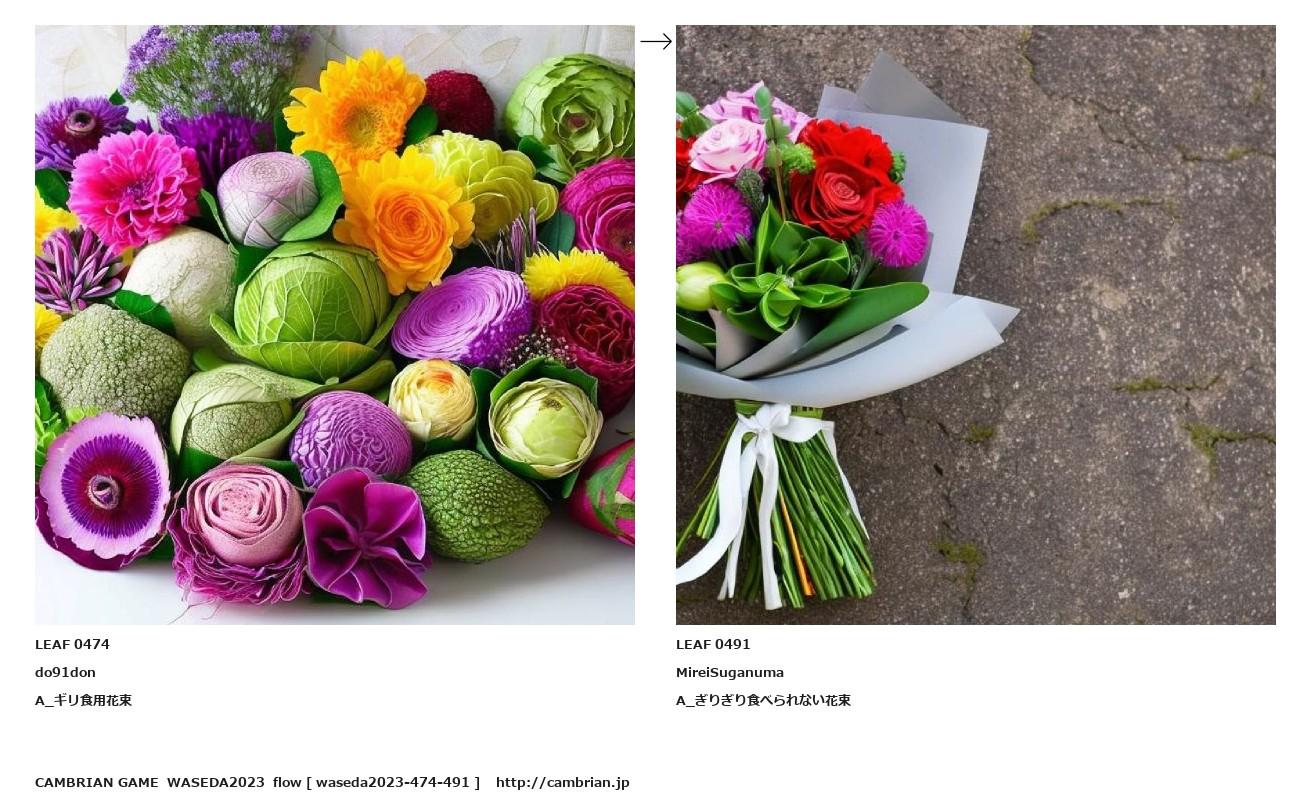 LEAF 0437フローに加えるLEAF 0474do91donA_ギリ食用花束↑ここから上をフローから外す↓ここから下をフローから外すLEAF 0491MireiSuganumaA_ぎりぎり食べられない花束LEAF 0493フローに加える