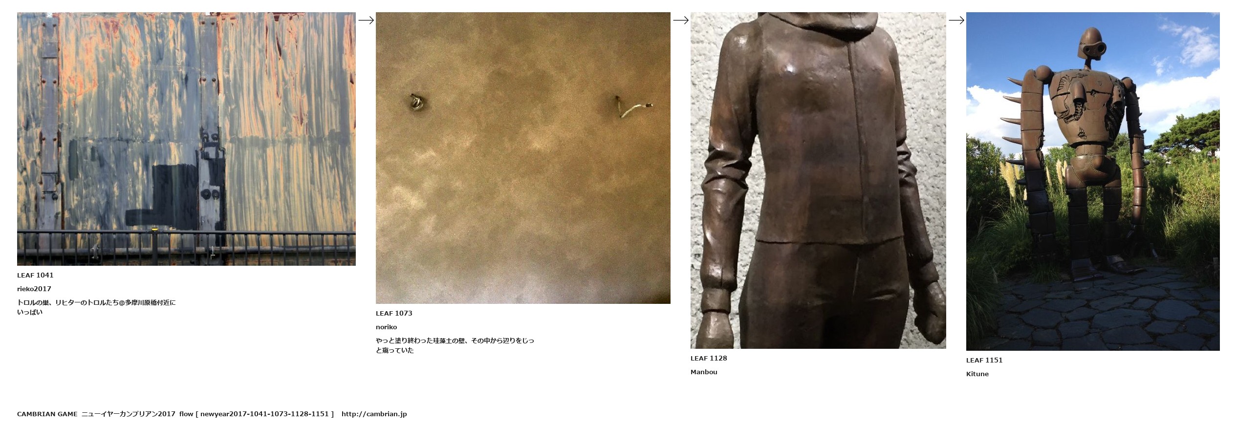 LEAF 1041rieko2017トロルの巣、リヒターのトロルたち@多摩川原橋付近にいっぱいLEAF 1073norikoやっと塗り終わった珪藻土の壁、その中から辺りをじっと窺っていたLEAF 1128ManbouLEAF 1151Kitune