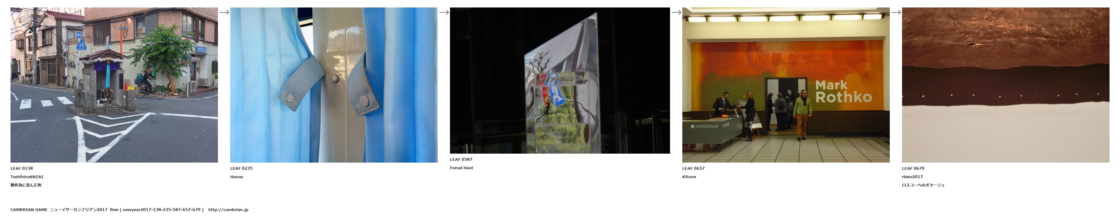 LEAF 0138ToshihiroANZAI無作為に歪んだ町LEAF 0235HanaeLEAF 0587Fomal HautLEAF 0657KituneLEAF 0679rieko2017ロスコ―へのオマージュ