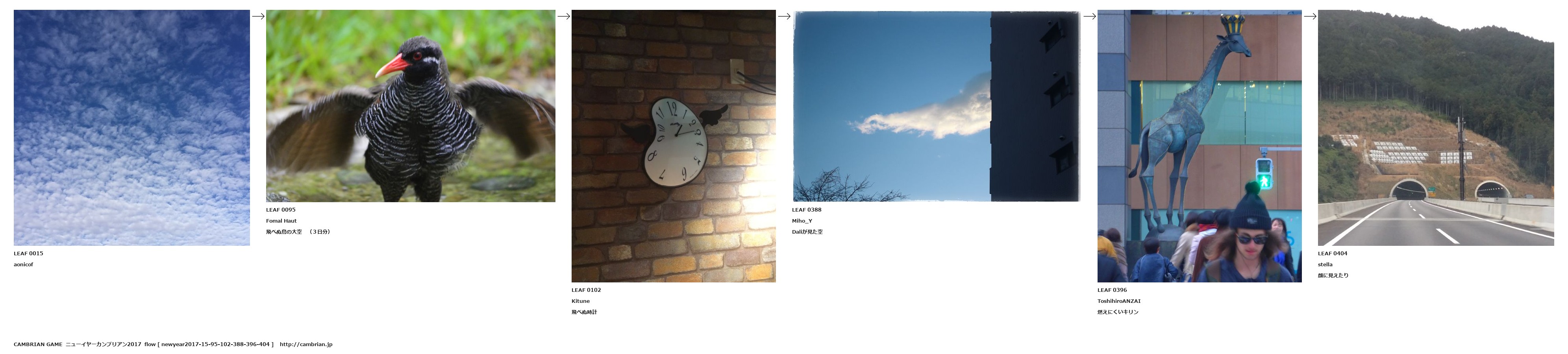 LEAF 0015aonicofLEAF 0095Fomal Haut飛べぬ鳥の大空 (3日分)LEAF 0102Kitune飛べぬ時計LEAF 0388Miho_YDaliが見た空LEAF 0396ToshihiroANZAI燃えにくいキリンLEAF 0404stella顔に見えたり