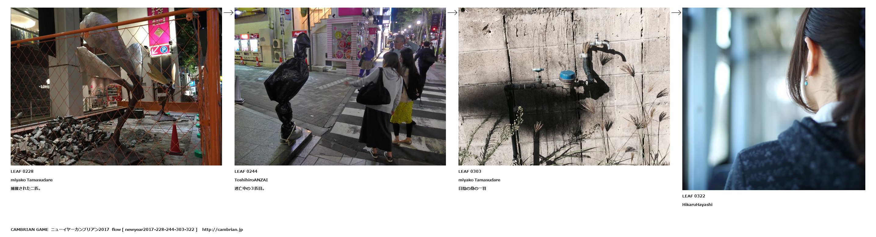 LEAF 0228miyako Tamasudare捕獲された二匹。LEAF 0244ToshihiroANZAI逃亡中の3匹目。LEAF 0303miyako Tamasudare日陰の身の一羽LEAF 0322HikaruHayashi