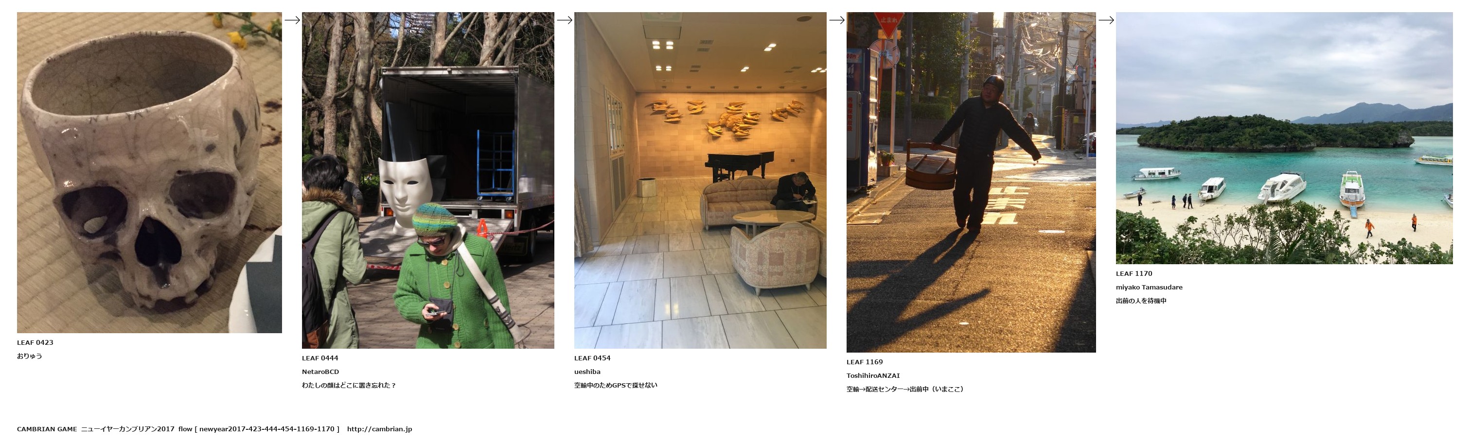 LEAF 0423おりゅうLEAF 0444NetaroBCDわたしの顔はどこに置き忘れた?LEAF 0454ueshiba空輸中のためGPSで探せないLEAF 1169ToshihiroANZAI空輸→配送センター→出前中(いまここ)LEAF 1170miyako Tamasudare出前の人を待機中