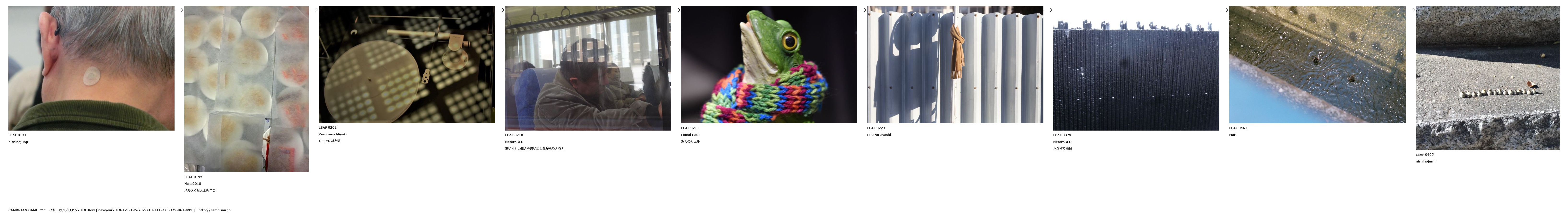 LEAF 0121nishinojunjiLEAF 0195rieko2018スルメくせぇよ新年会LEAF 0202Kumizuna Miyakiリニアに針と溝LEAF 0210NetaroBCD遠いイカの臭さを思い出しながらうとうとLEAF 0211Fomal Haut近くのカエルLEAF 0223HikaruHayashiLEAF 0379NetaroBCDさえずり機械LEAF 0461MariLEAF 0495nishinojunji