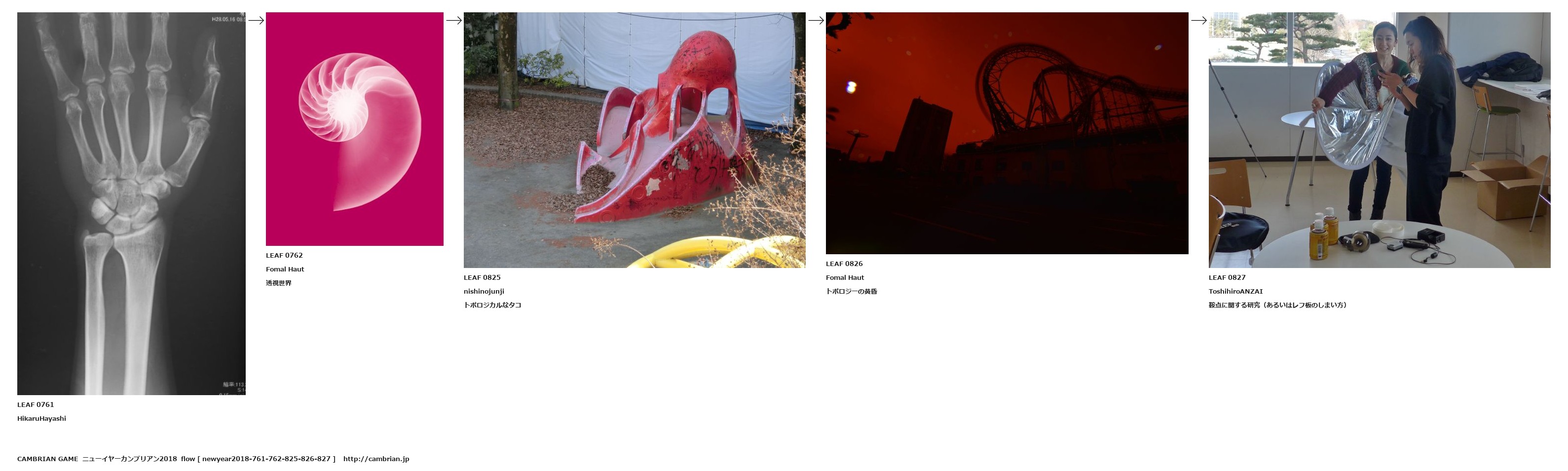 LEAF 0761HikaruHayashiLEAF 0762Fomal Haut透視世界LEAF 0825nishinojunjiトポロジカルなタコLEAF 0826Fomal Hautトポロジーの黄昏LEAF 0827ToshihiroANZAI鞍点に関する研究(あるいはレフ板のしまい方)