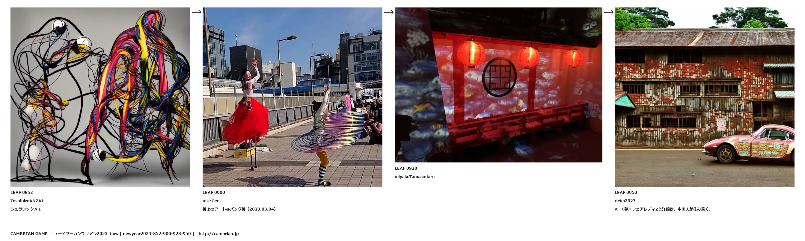 LEAF 0852ToshihiroANZAIジュラシックAILEAF 0900mU・Gen橋上のアート@パンダ橋(2023.03.04)LEAF 0928miyakoTamasudareLEAF 0950rieko2023A_<夢>フェアレディZと洋館群、中国人が住み着く、