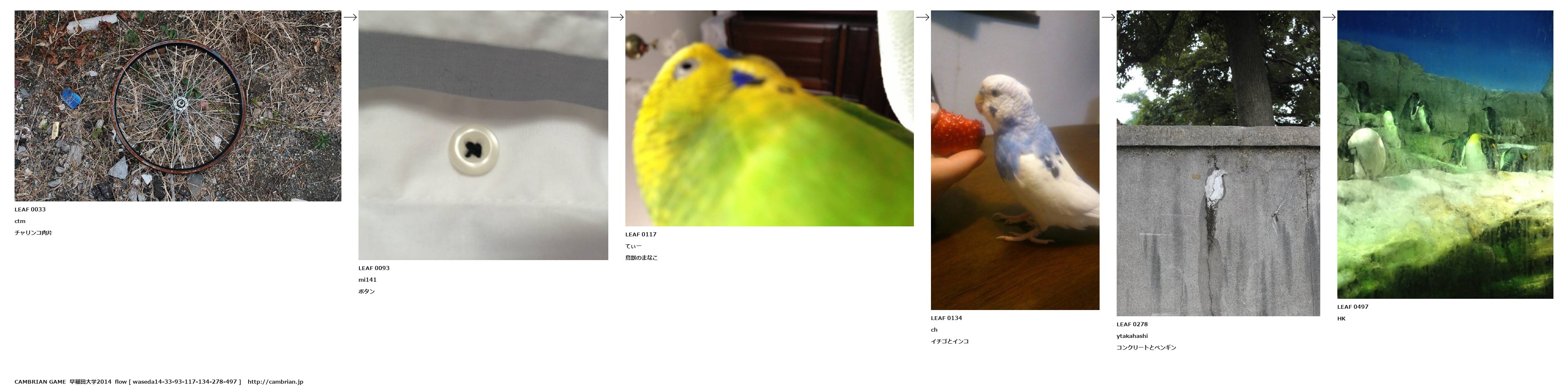 LEAF 0033ctmチャリンコ肉片LEAF 0093mi141ボタンLEAF 0117てぃー鳥獣のまなこLEAF 0134chイチゴとインコLEAF 0278ytakahashiコンクリートとペンギンLEAF 0497HK